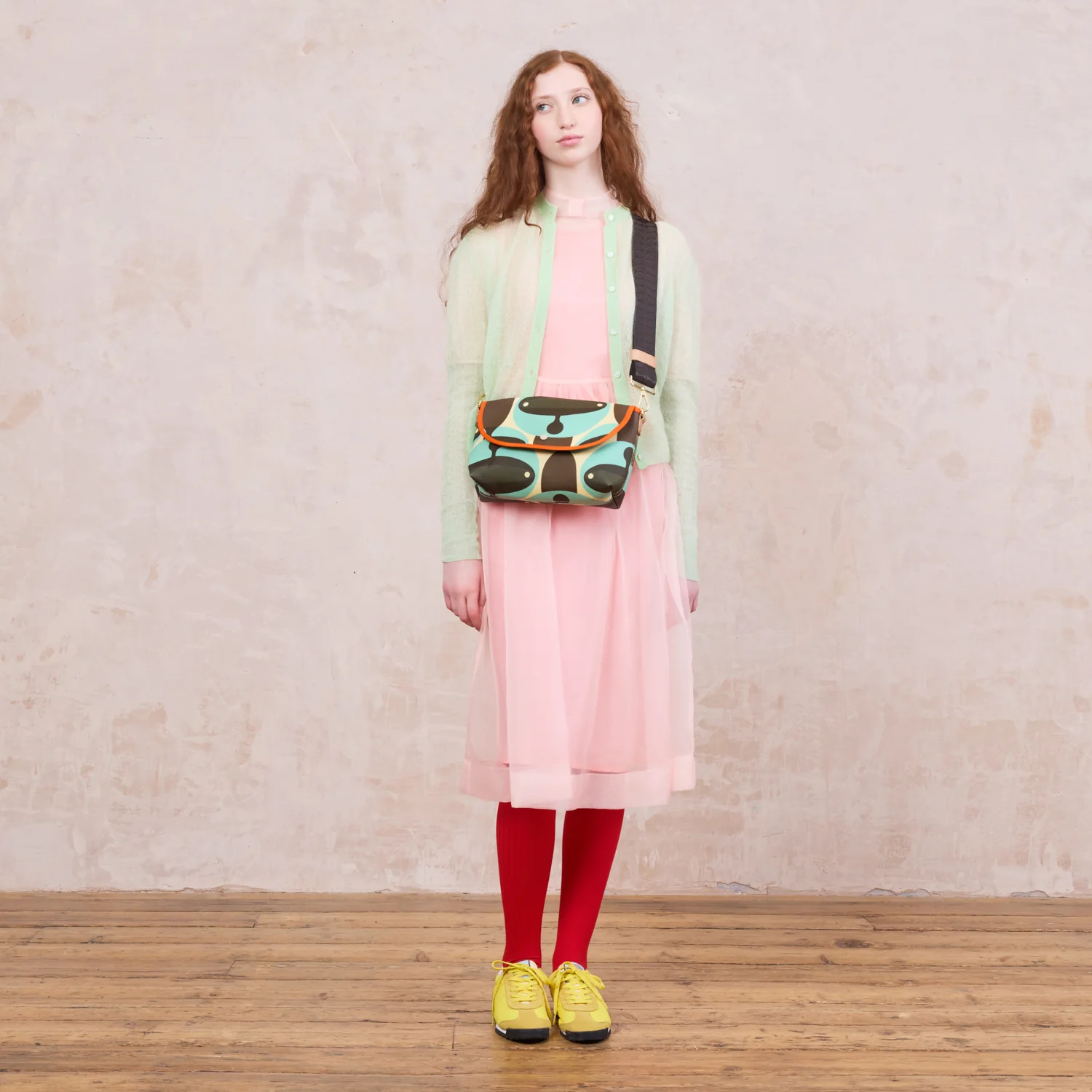 The Orla Kiely Acre Satchel is a simple, everyday women’s crossbody bag designed for effortless wear. A refined take on a classic satchel bag silhouette, it features a spacious main compartment, an internal pocket for smaller essentials, and an adjustable strap that can be worn over the shoulder or crossbody. Externally there is a back zip pocket and Orla’s signature orange elasticated key clip help keep essentials organised, while the structured shape makes this ladies’ satchel bag ideal for workdays, as a practical handbag, and everything in between.