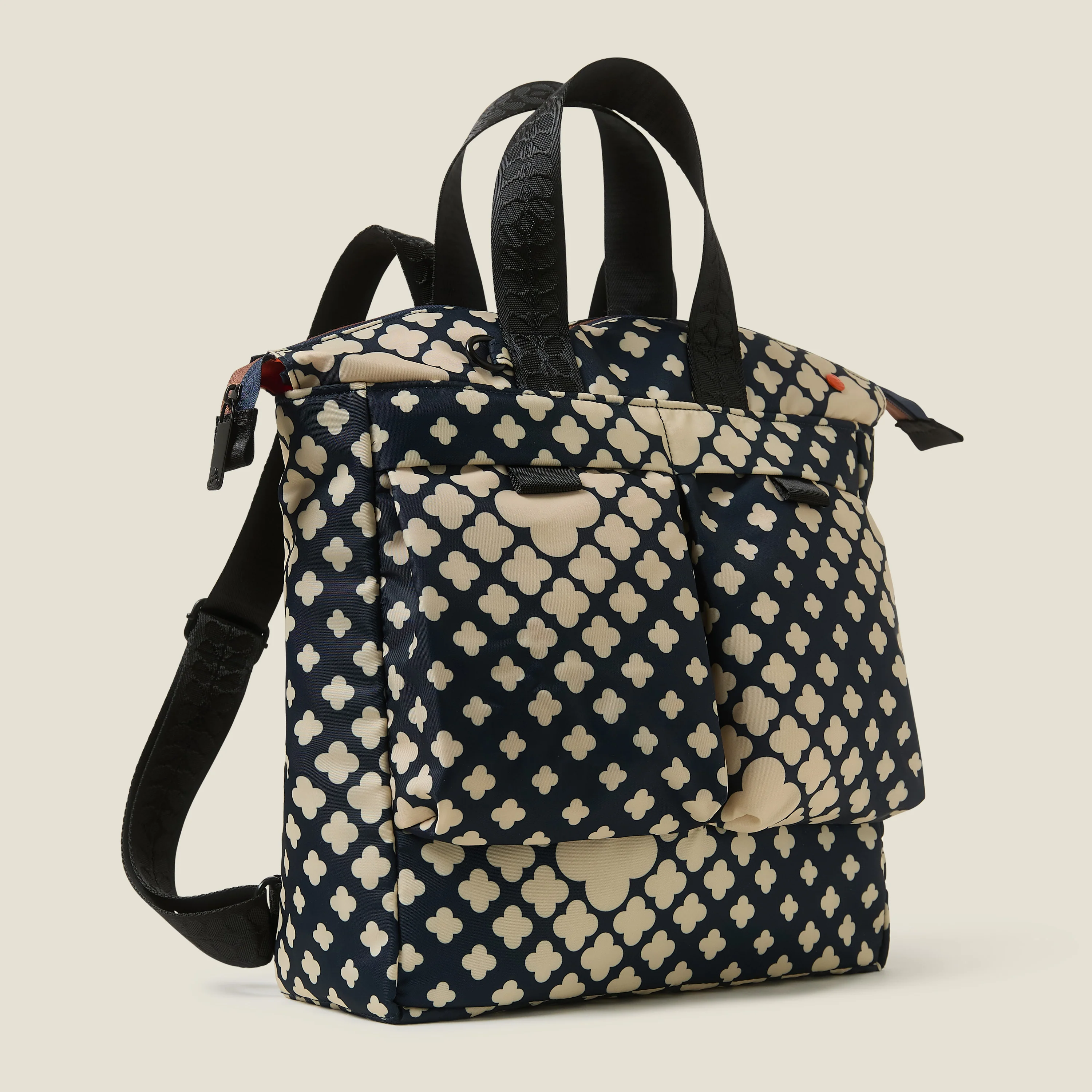 Part of Orla Kiely’s Bags for Good collection, the Axis Backpack is made from 100% recycled polyester. This season, the BFG range features a new fabrication which makes our prints look even brighter and cleaner. The inner padding has been enhanced which provides the bags with even more structure whilst still being extremely lightweight, perfect for everyday use or as a reliable travel backpack.